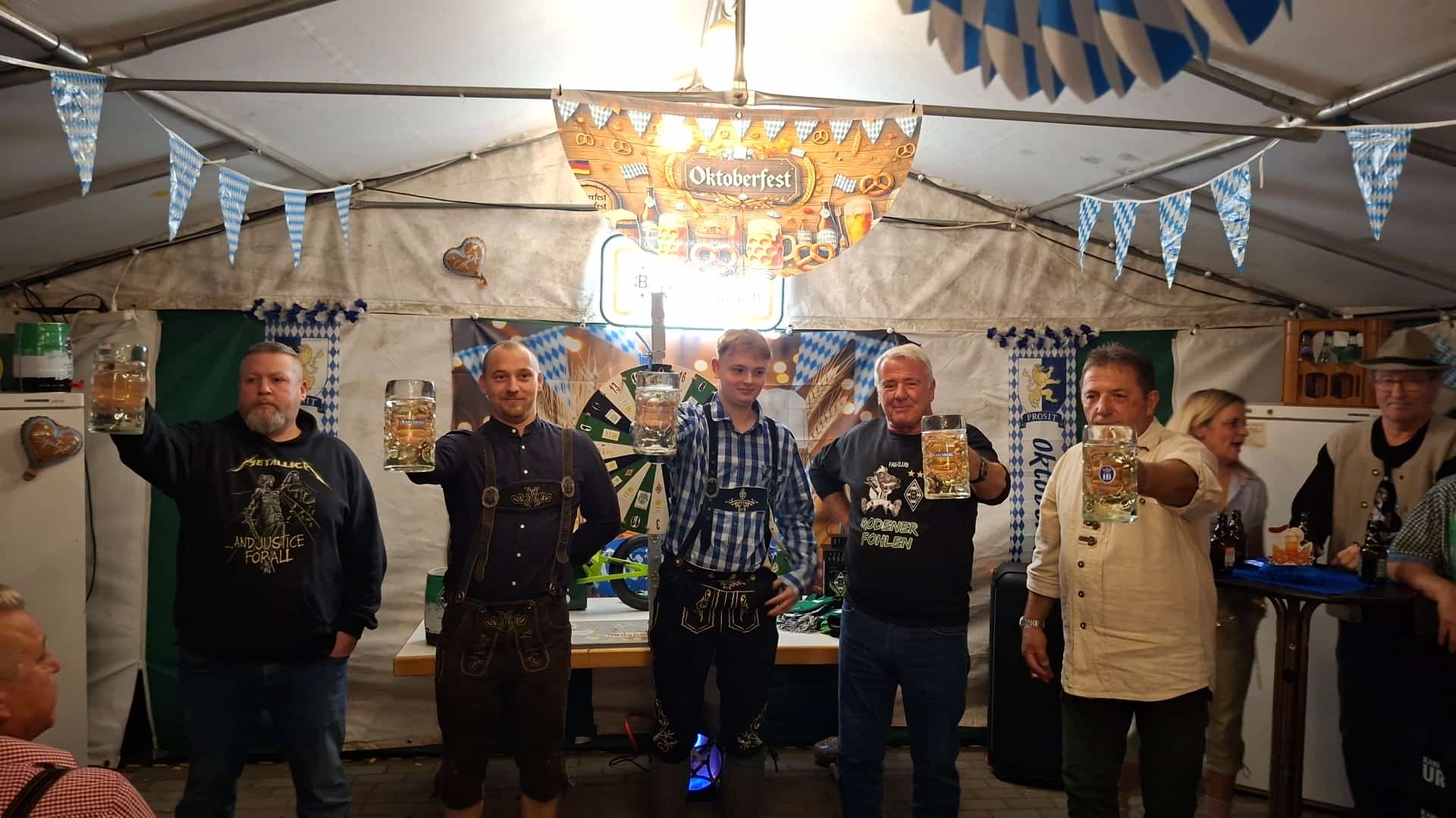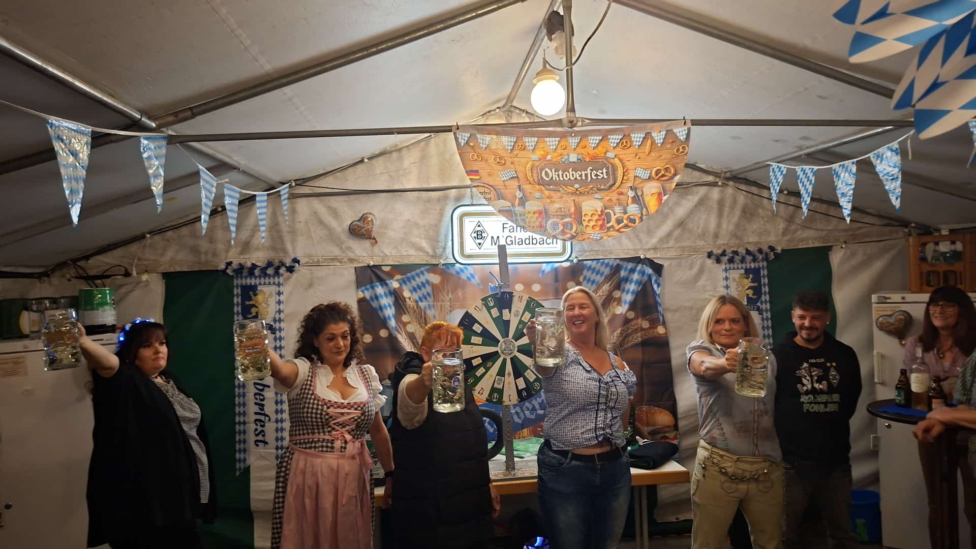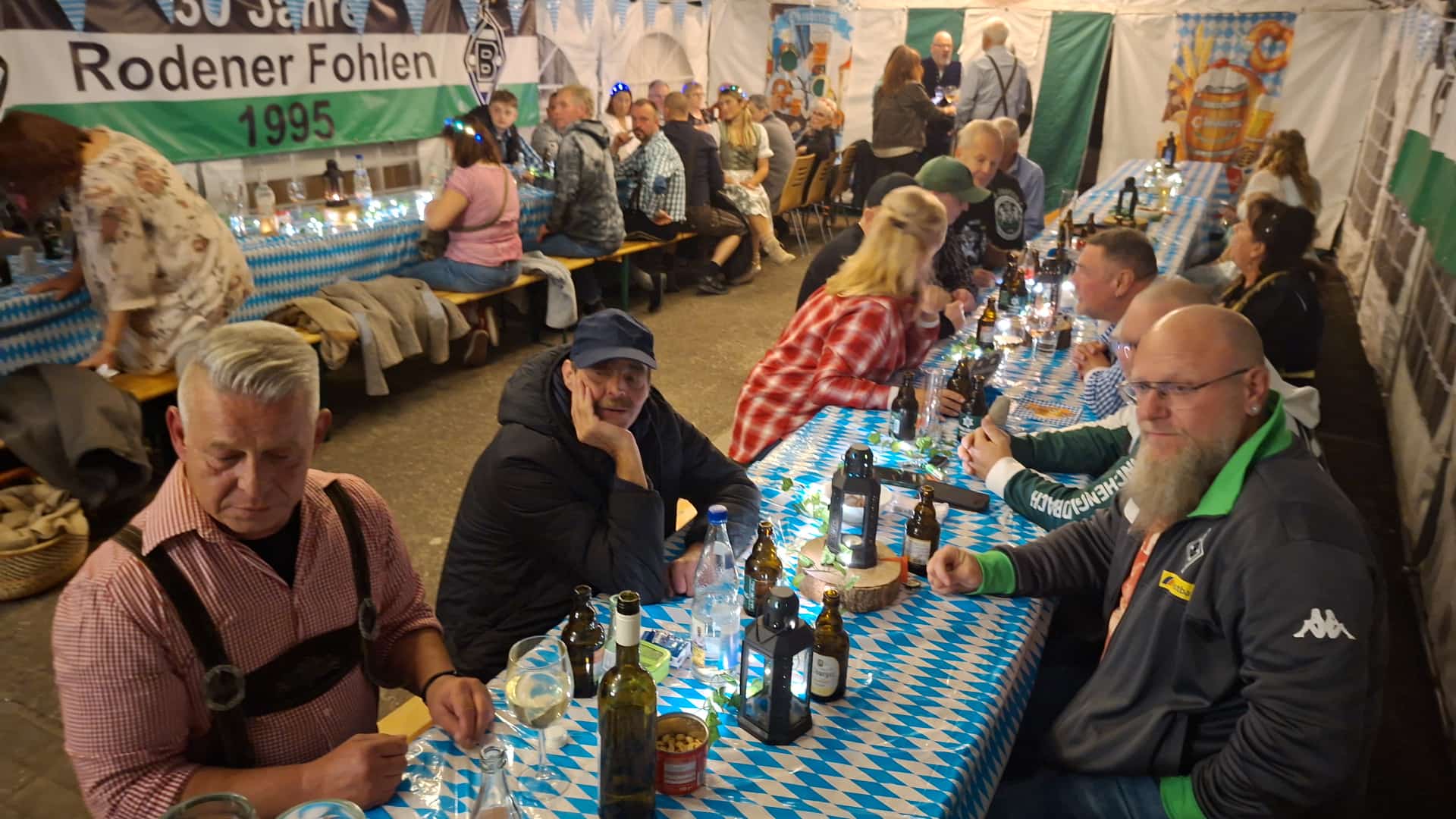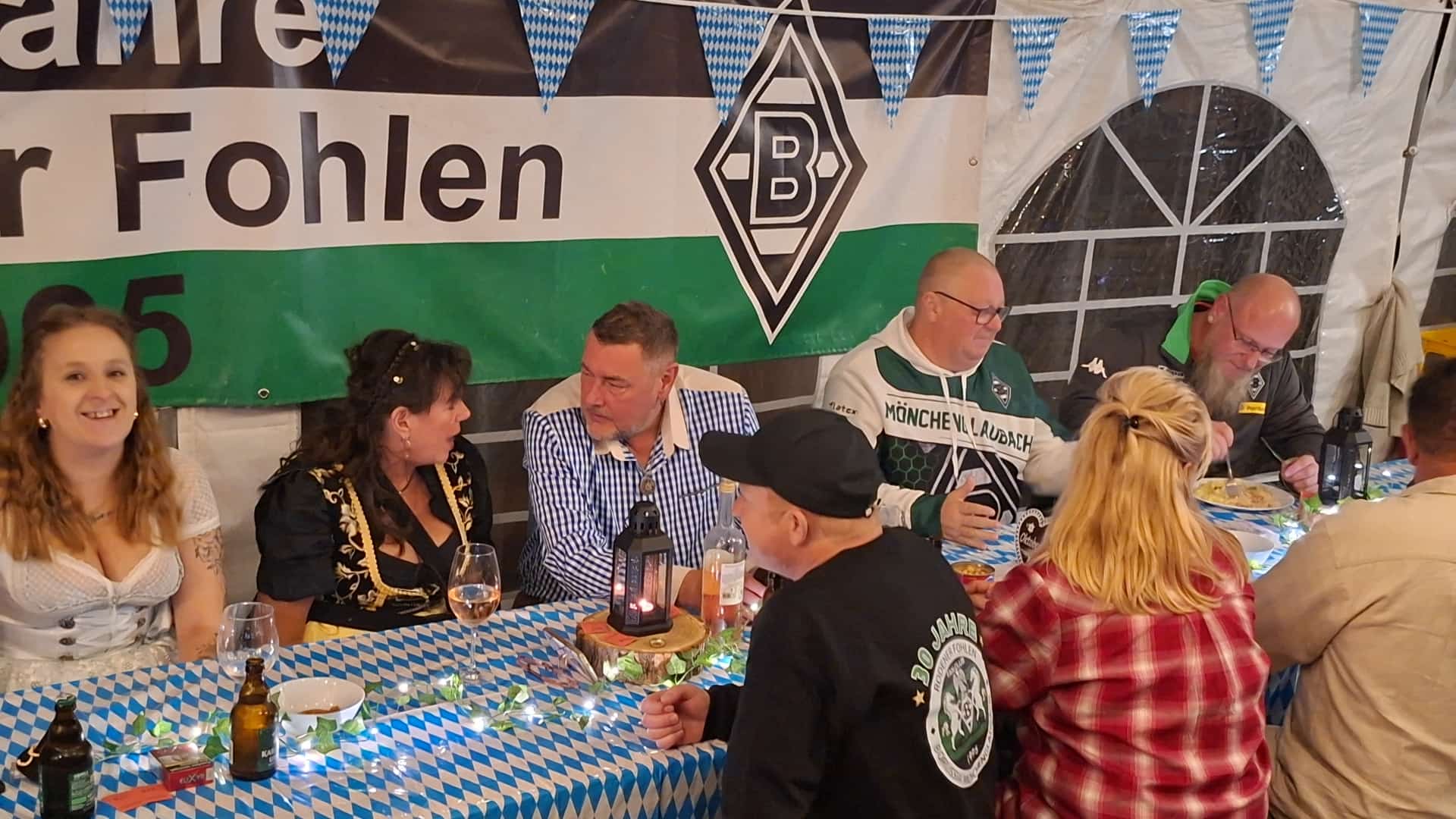 Wenn es sportlich bei der Mannschaft nicht läuft, ist das noch lange kein Grund, Trübsal zu blasen. Und mit dieser Einstellung kamen zum Rodenerfohlen Oktoberfest 60 Fohlen Fans, und ließen es so richtig krachen! Von Beginn herrschte im wunderschön geschmückten Festzelt reges Treiben. Auch als Unbeteiligter konnte man sofort erkennen, dass hier Gladbach Fans am feiern sind.