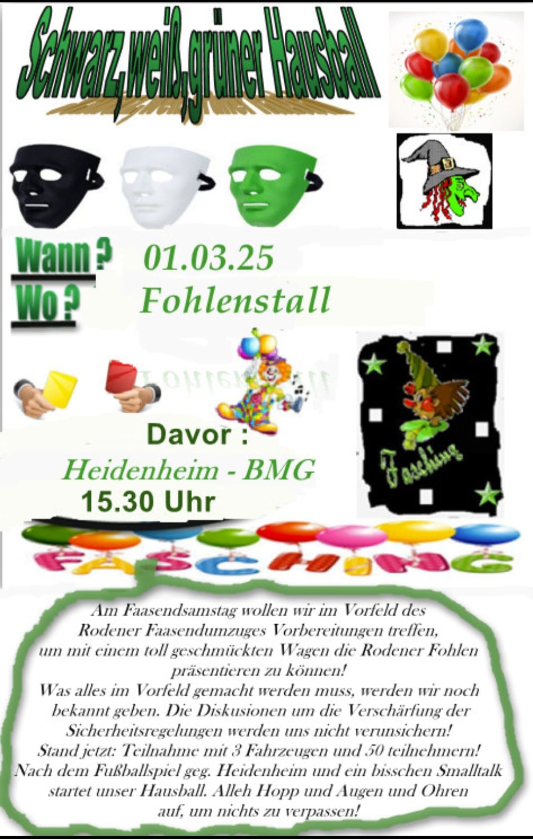 Nach dem Fußballspiel gegen Heidenheim und etwas Smalltalk startet unser Hausball im Fohlenstall! Alleh Hopp! Augen und Ohren auf um nichts verpassen!